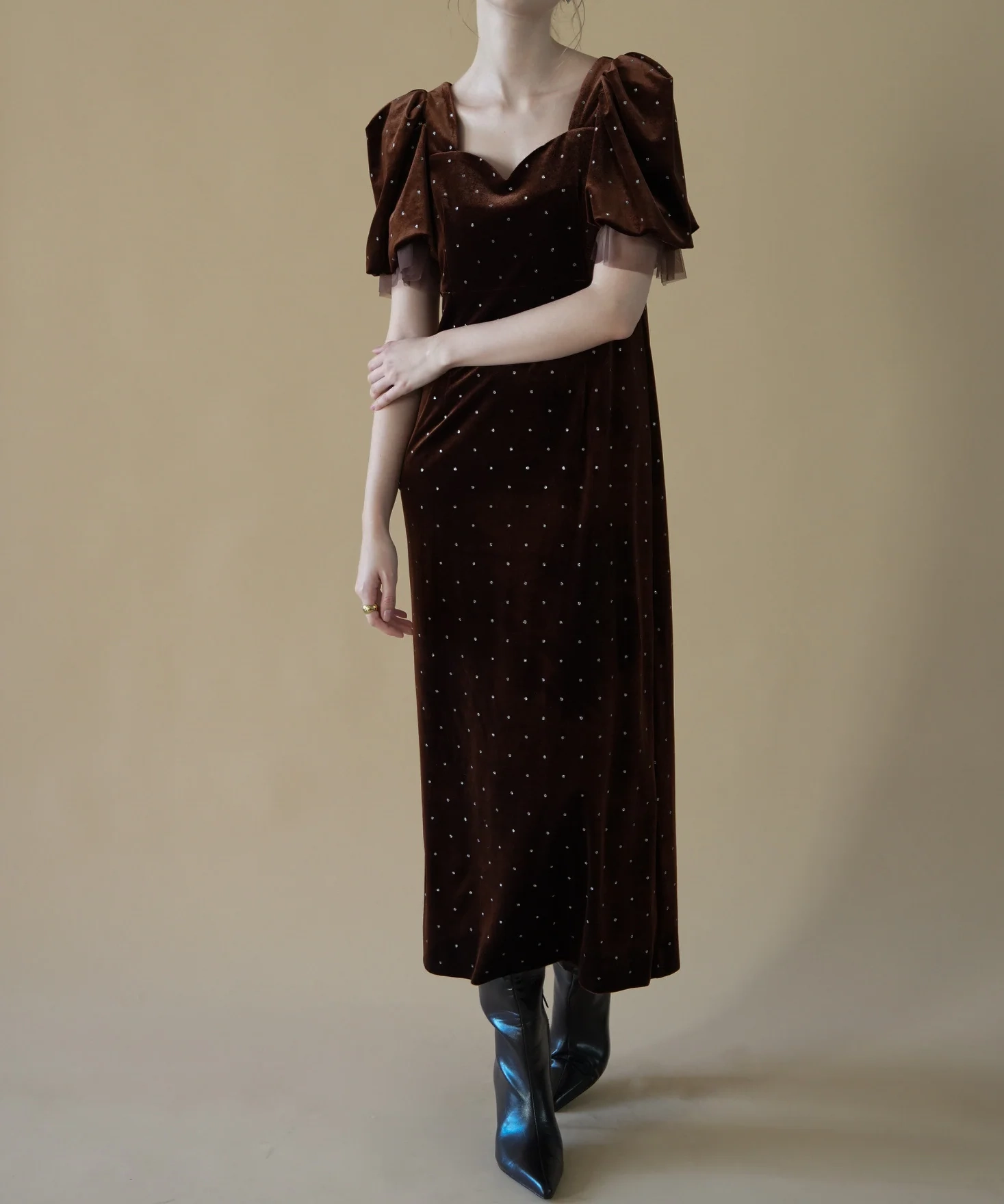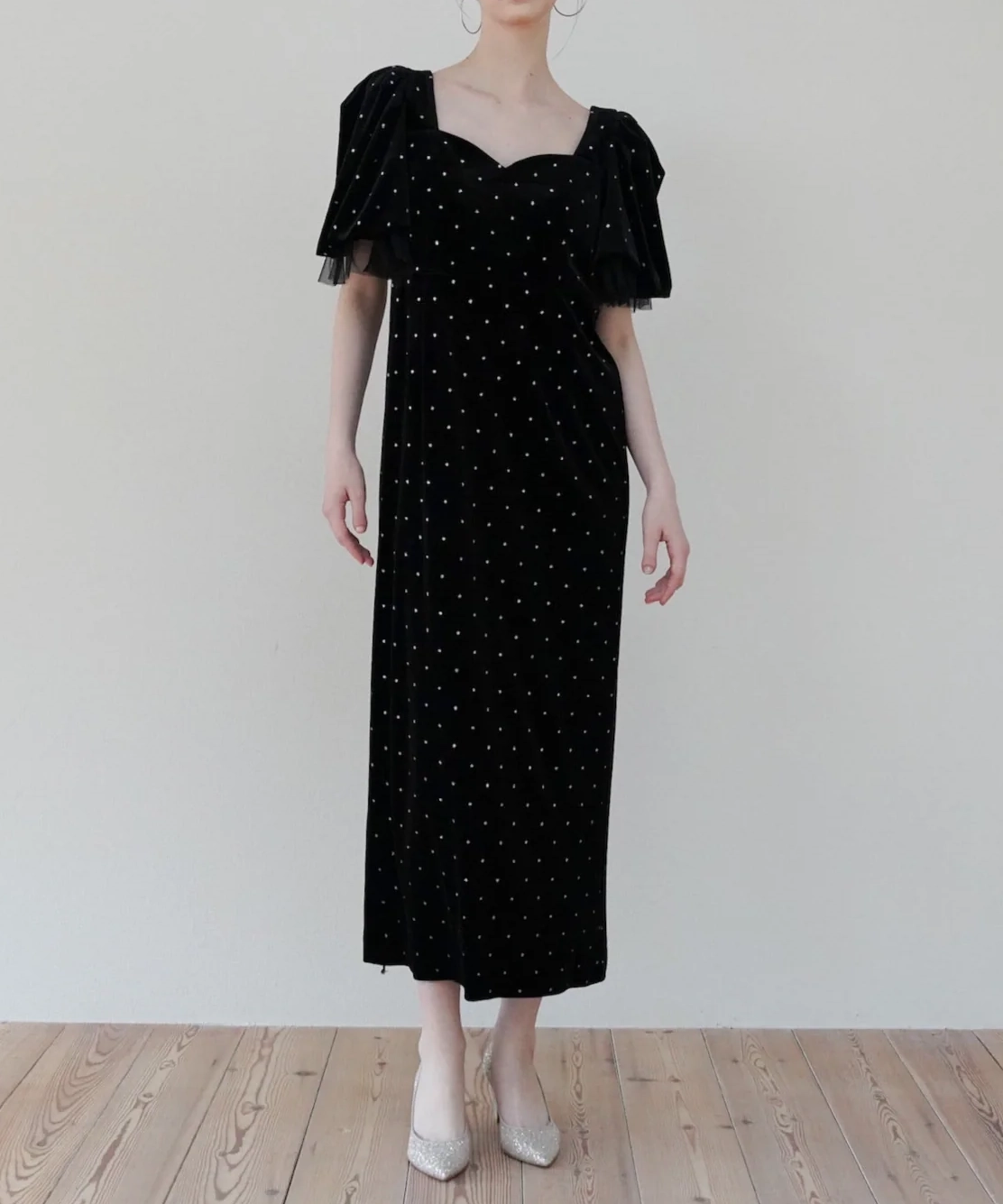 【Sサイズ】BACK OPEN PEARL VELOUR DRESS