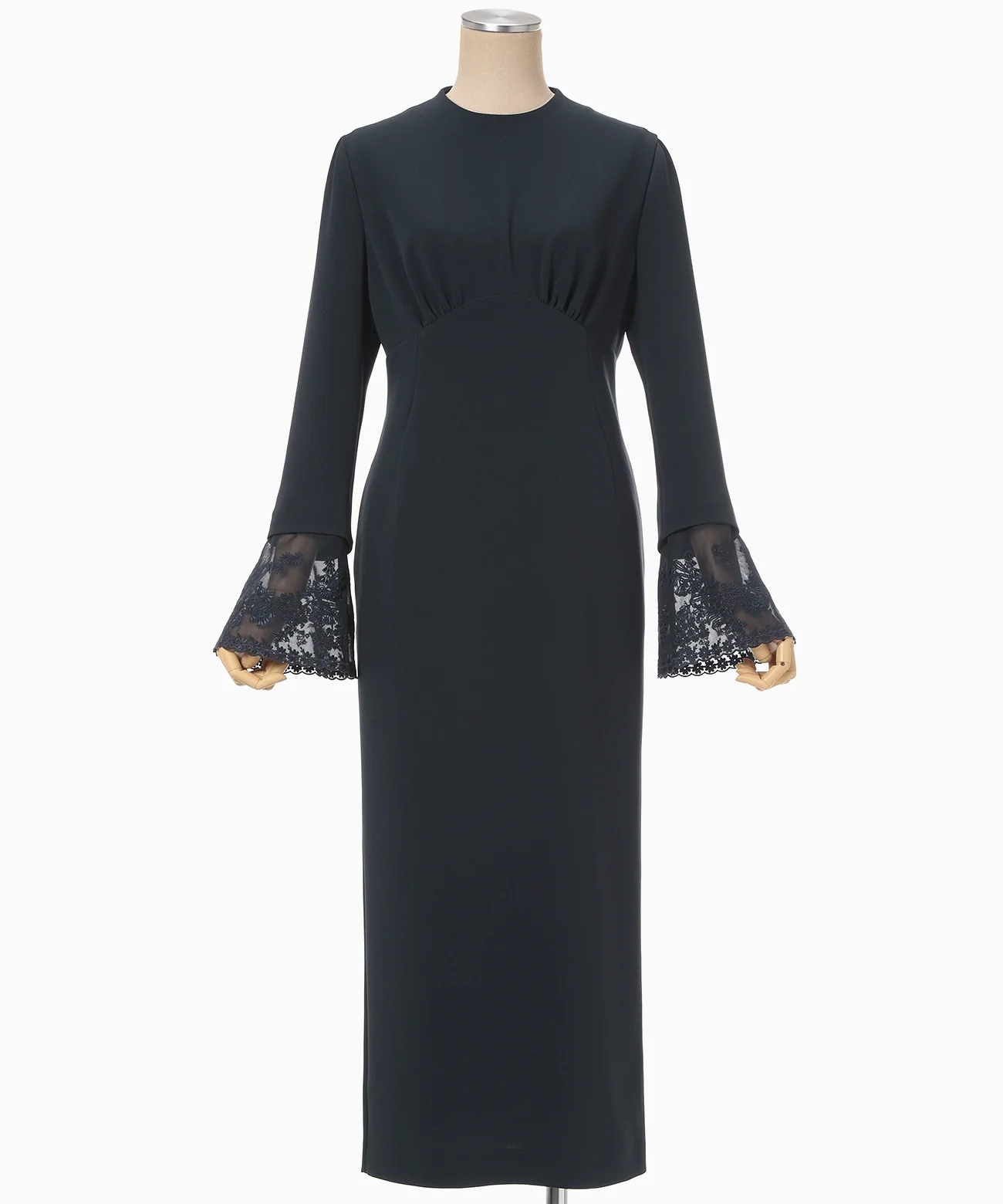【2サイズ】Lace Cuffs A-Line High Neck Dress