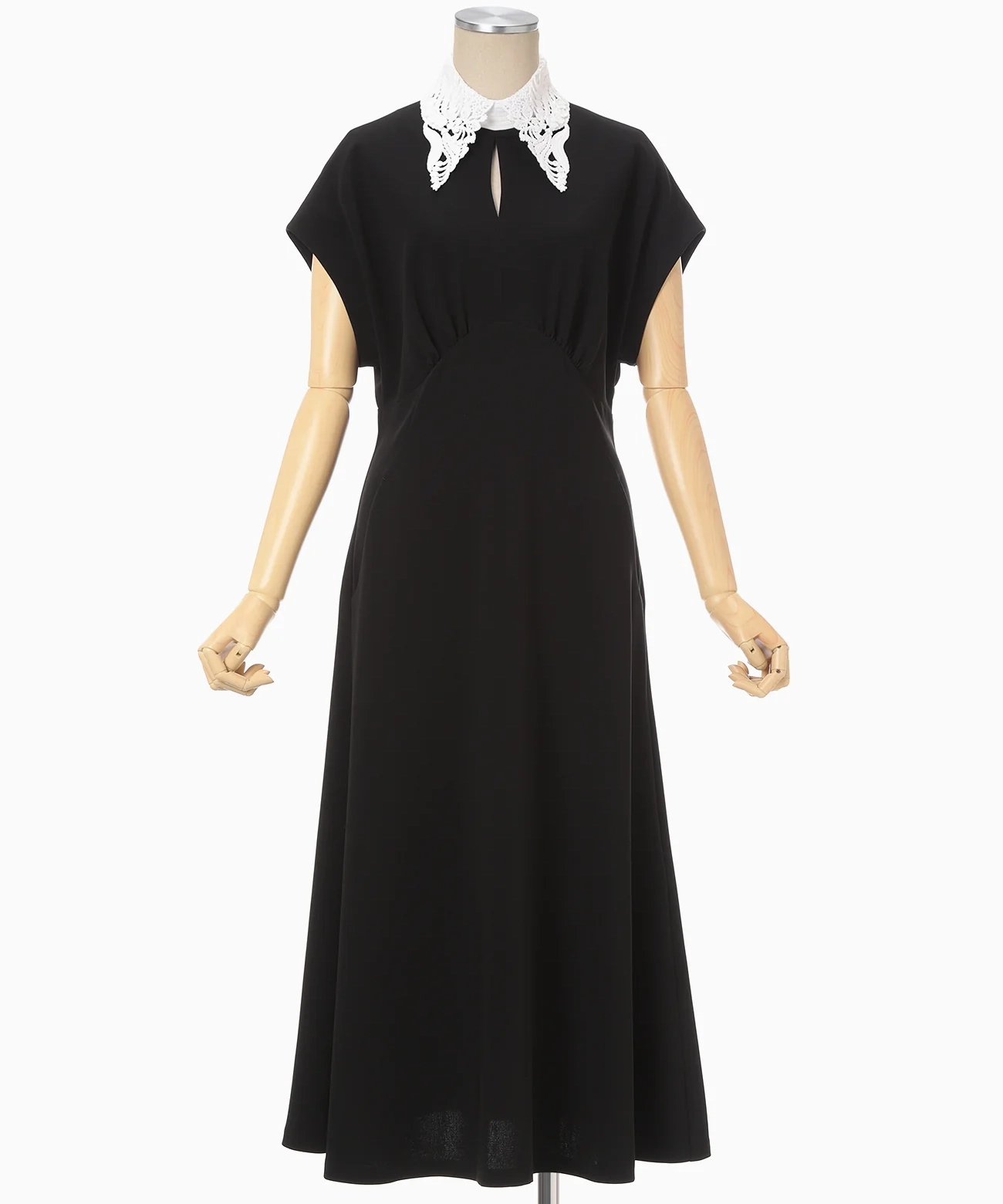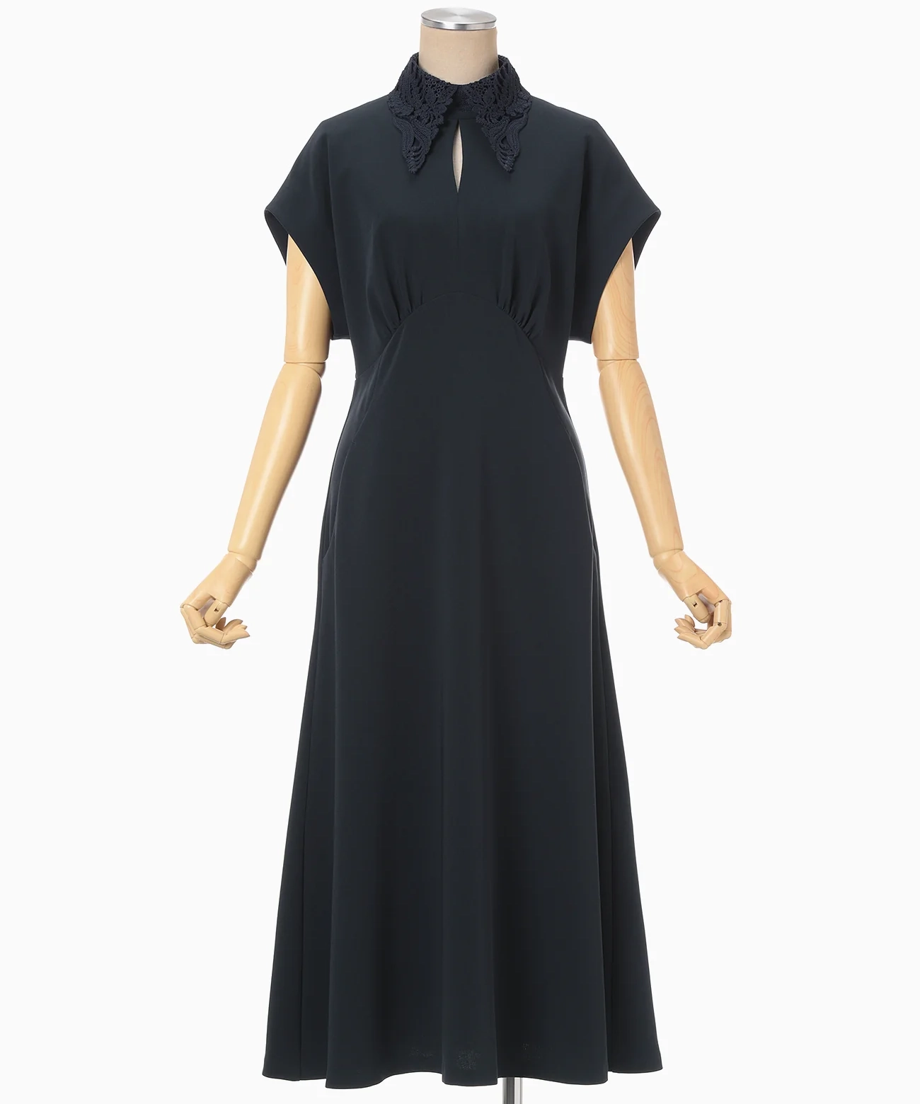 【1サイズ】Lace Cuffs A-Line High Neck Dress