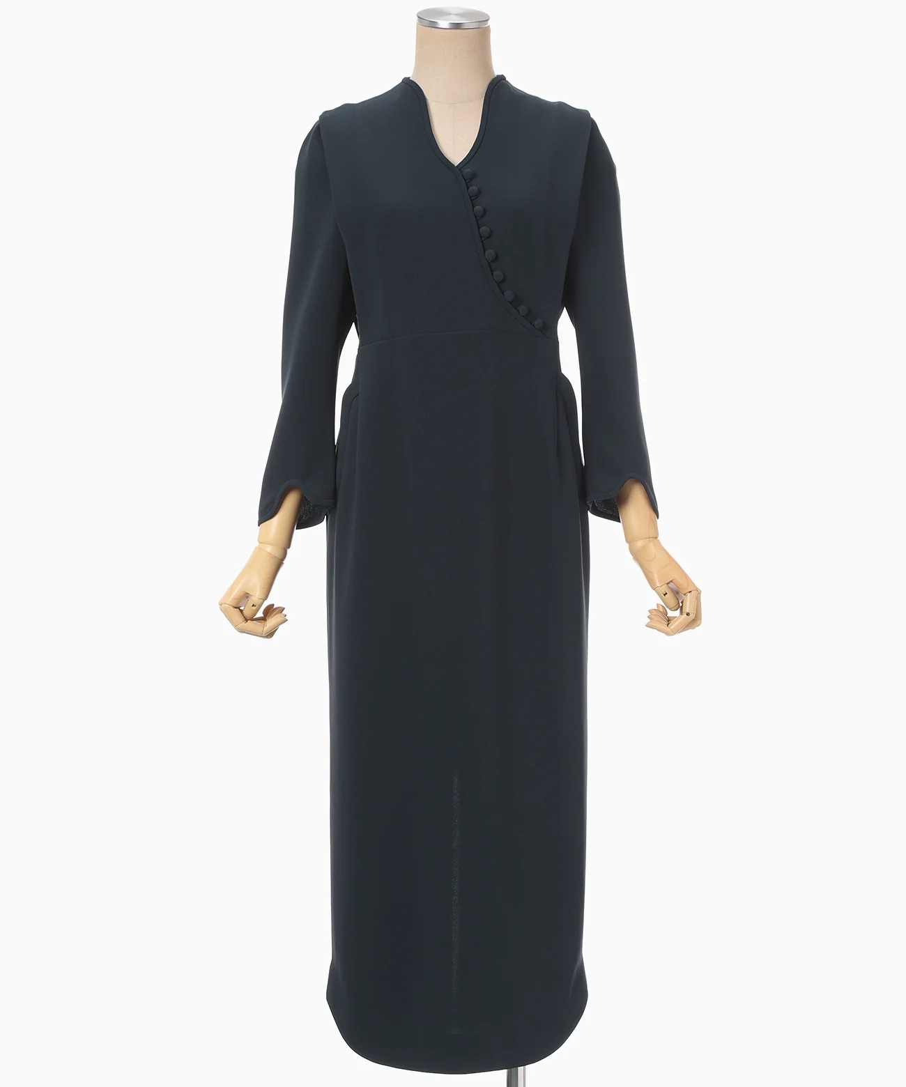 【40サイズ】フレアスリーブパールスリットラインドレス