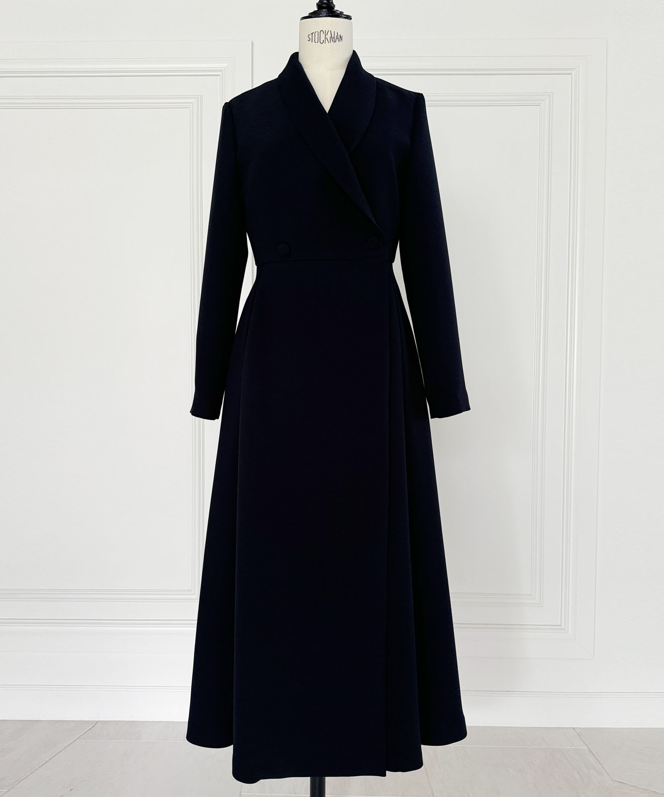 【2サイズ】Floral Lace-Sleeve Classic Dress - navy