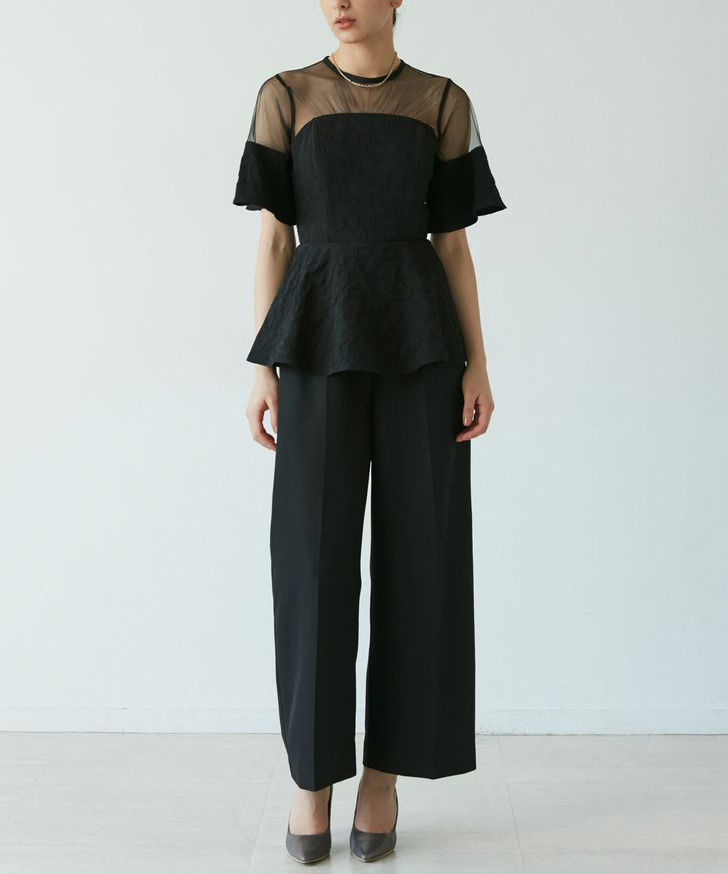【3Lサイズ】レースデザインブラウス+アシメレース使いワイドパンツセットアップドレス