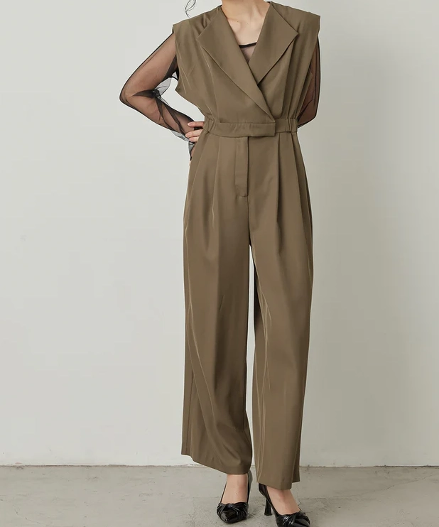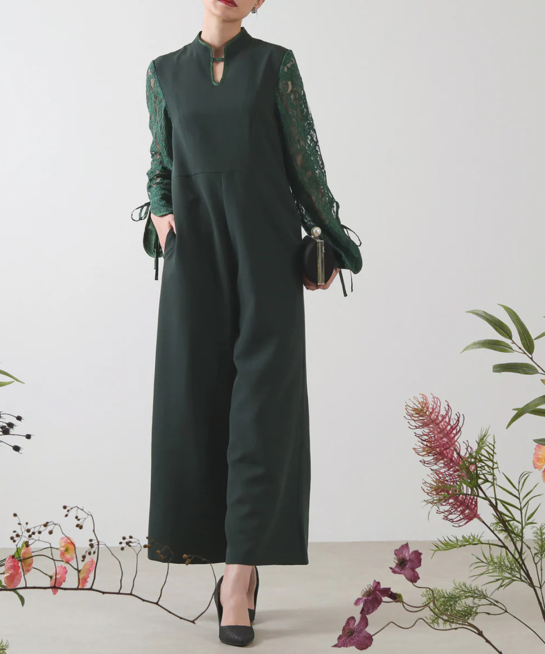 【Mサイズ】レース カフス スリット オールインワン パンツドレス