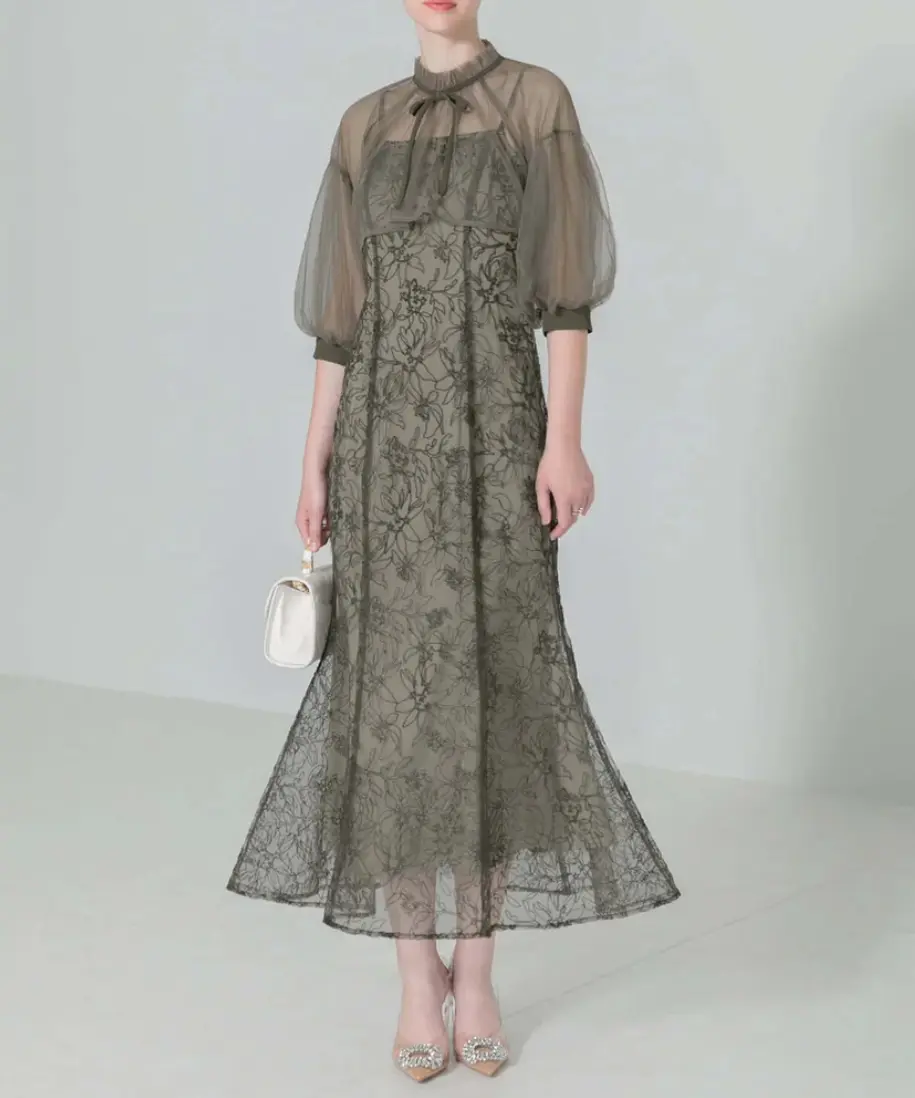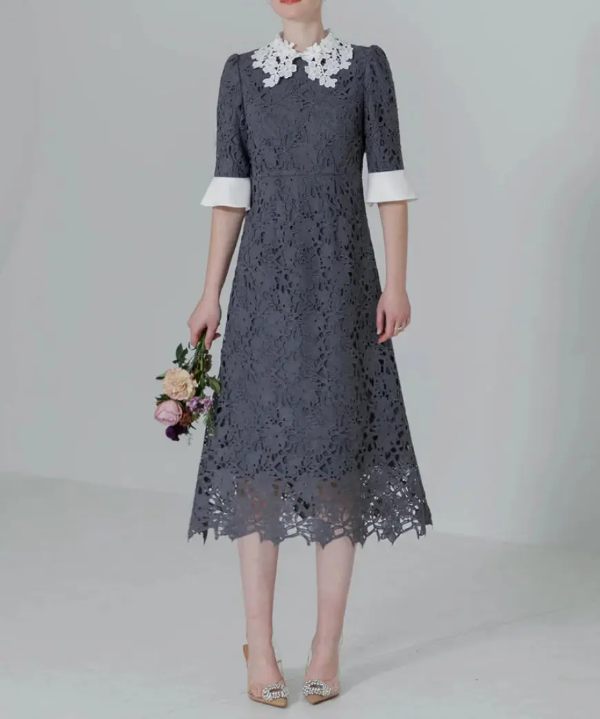 【0サイズ】PIPING LINE LACE ONE PIECE