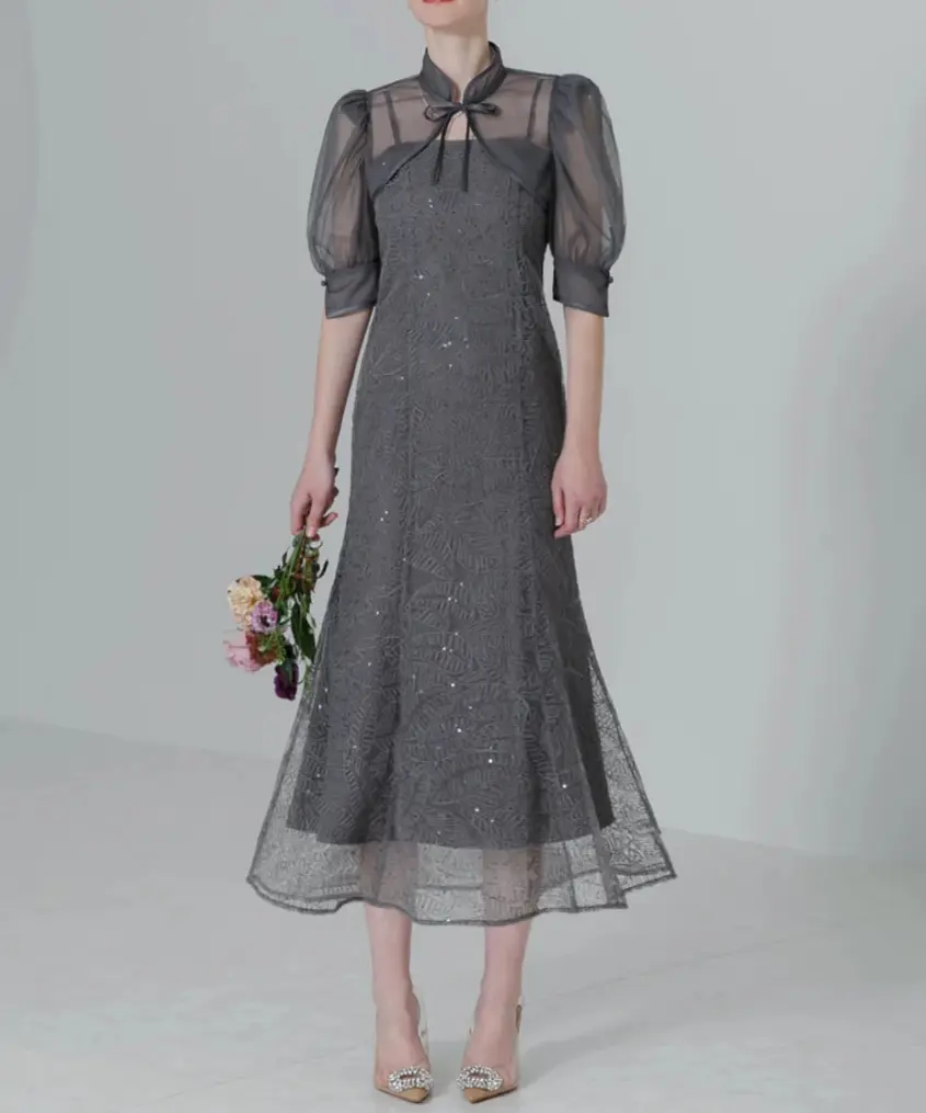 【Sサイズ】ビジューストーンボレロベロアスリットIラインドレス