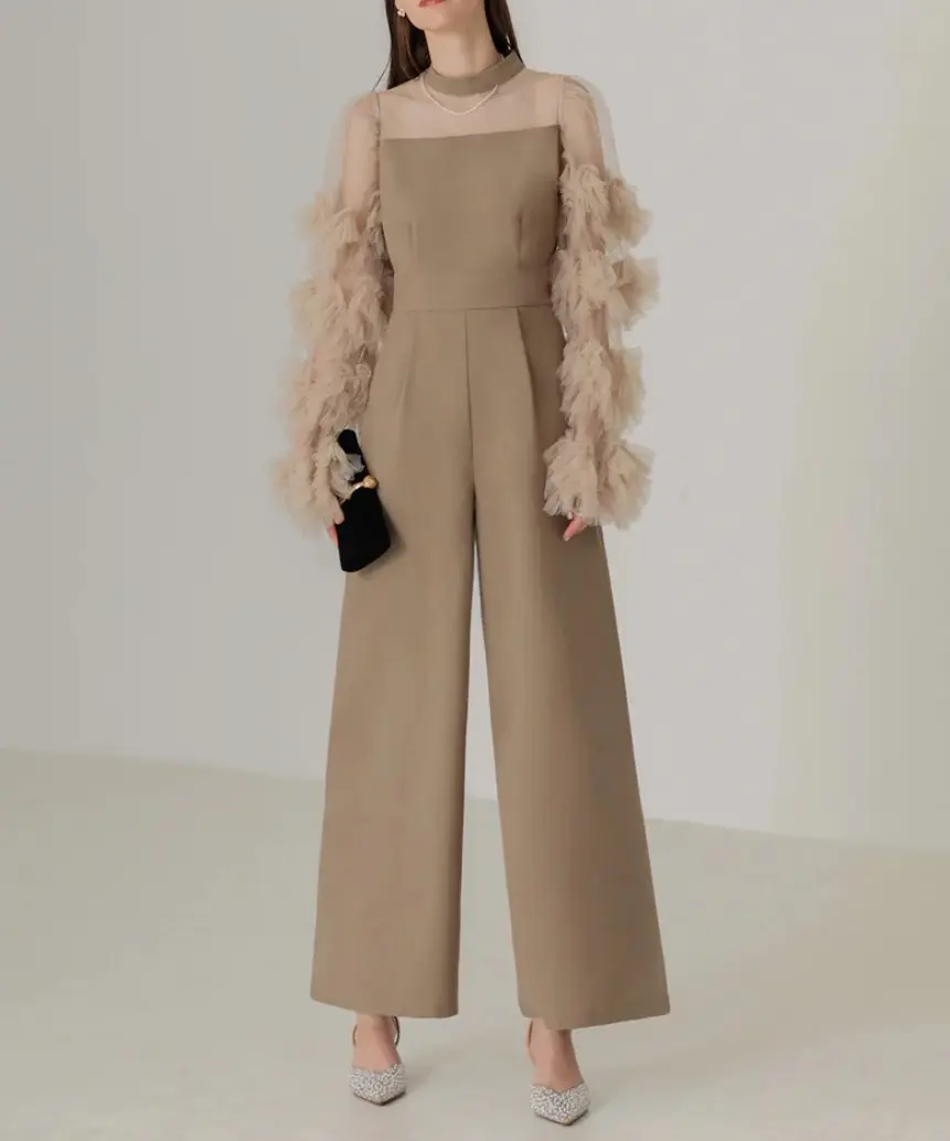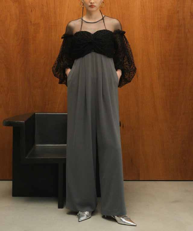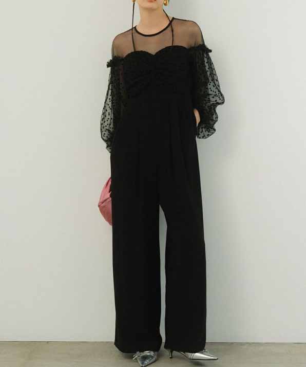 【Mサイズ】ボリュームチュールスリーブオールインワンパンツドレス