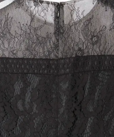 繊細で美しいコードレースを使用したエレガントな印象のオケージョンドレス。マチの間にプリーツテクニックを入れ、動いたときに綺麗に見える様にデザインしています。ひざ下の長め丈も大人らしい印象に。