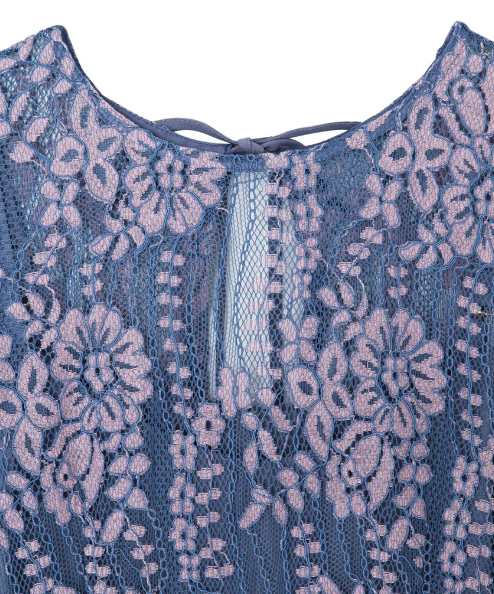 配色レースの生地が美しいドレスです。袖にギャザーを入れ、より柔らかく女性らしいです。リボン部分を結ばずジレとして羽織る着方もでき、2way仕様でアレンジを楽しんでいただけます。レースの華やかさと落ち着いた色味が、結婚式などのお呼ばれにはもちろん、特別な日におすすめです。
