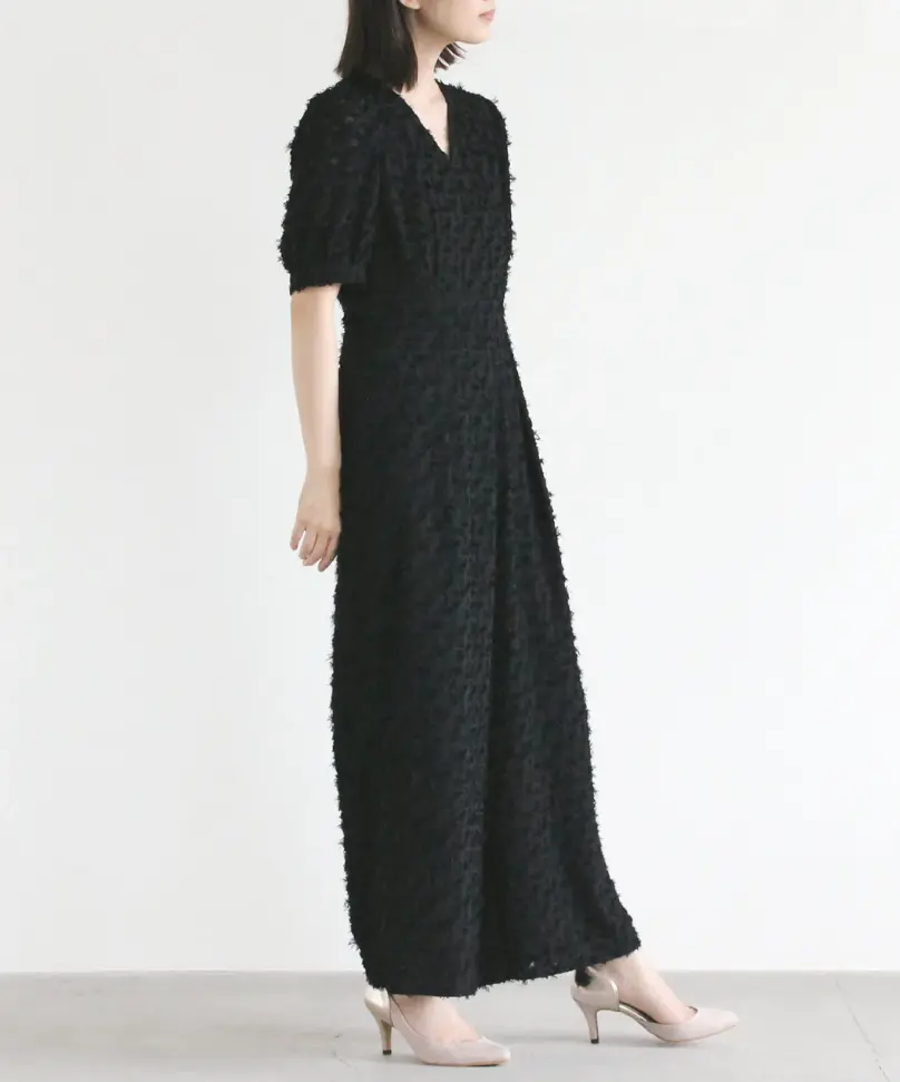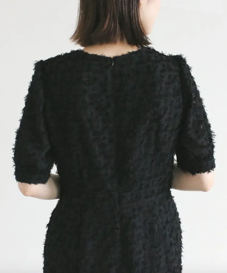 デザイン自体はシンプルですが、毛足が長いジャガード素材が、とびきり華やかな印象を与え、オリジナリティある着こなしを演出します。