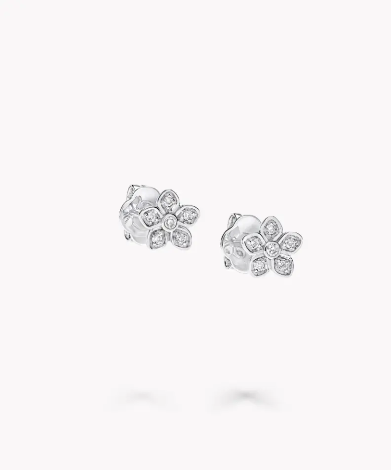 優美なワイルドフラワー パヴェダイヤモンド スタッドイヤリング。トータル約0.08カラット。