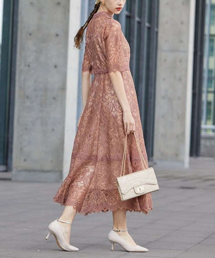 配色レースの生地が美しい、ハシゴレース切り替えワンピース。
