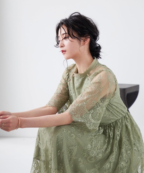 袖は5分丈のレースシアー素材なので二の腕をカバーできます。