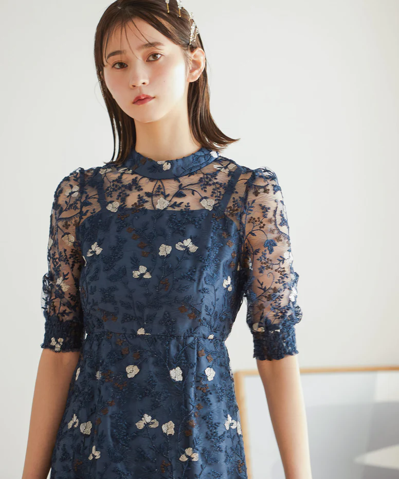 アンティーク調の刺繍レースが目を惹くパーティードレスです。