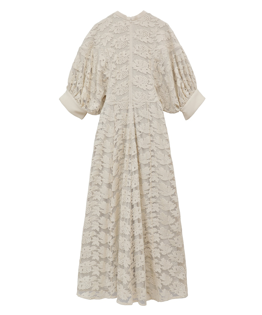 花柄の刺繍を施した、ナチュラルなメッシュレース生地のワンピース。
