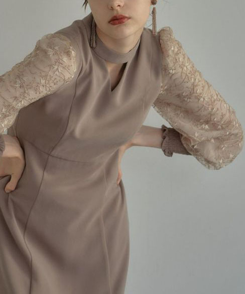 女性らしいシルエットを演出する、すとんと落ち感のある生地を使用したワンピースドレスです。