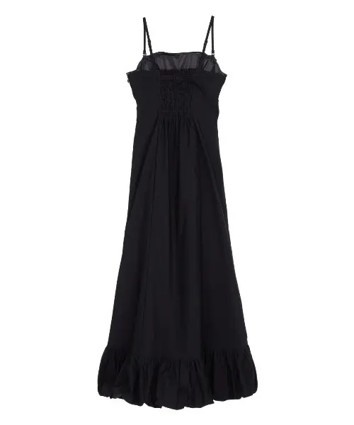 トップスのチュールとワンピースをレイヤードさせて着用するAmeriらしいドレスです。背中の開きがポイントです。カップ付きでインナーの心配もなく着用できます。