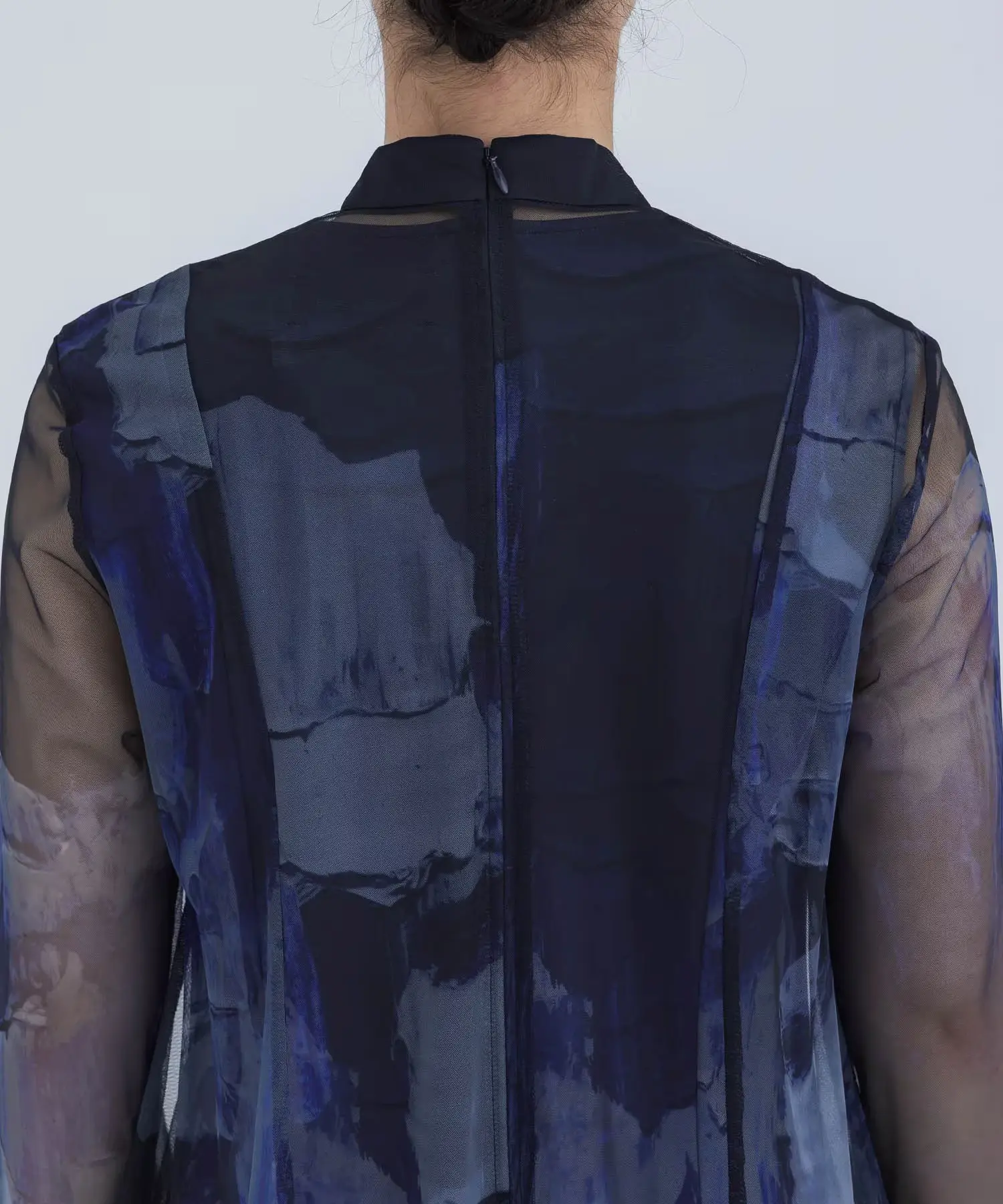 石膏アートからインスピレーションを受けて制作した、オリジナルのアート柄のレイヤードドレス。