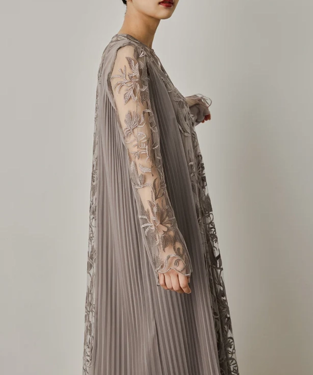 上品さと落ち着きを兼ね備えた一着でございます。やわらかな色味が肌なじみよく、さりげない華やかさを演出してくれるため、結婚式やパーティー、セレモニーなど幅広いフォーマルシーンでご活用いただけます。