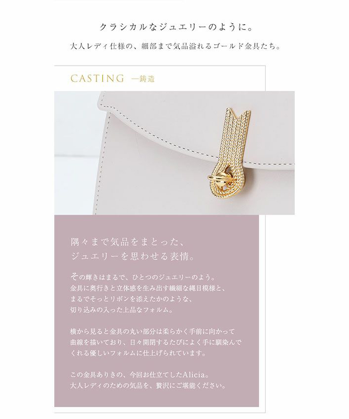 高品質なレザーを使用し、軽量で使いやすく、日常使いにも特別なシーンにもぴったりのバッグです。