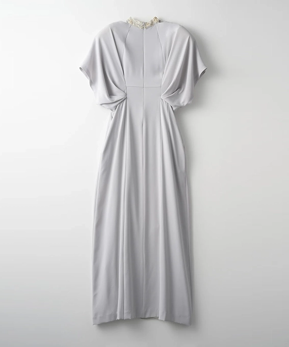 レースは日本でたった1社しか再現できない刺繍技術を用いていて、アートのような奥行きと品格が漂います。結婚式や特別なディナーに、主役級の存在感を放ちたい方におすすめです。