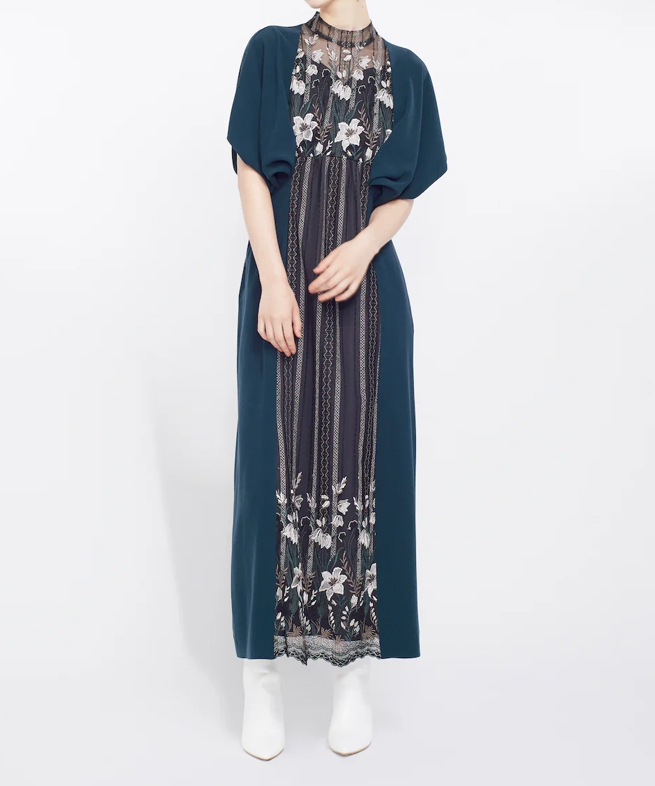Framed flower ストレートドレス|国産エンブロイダリーレース使用