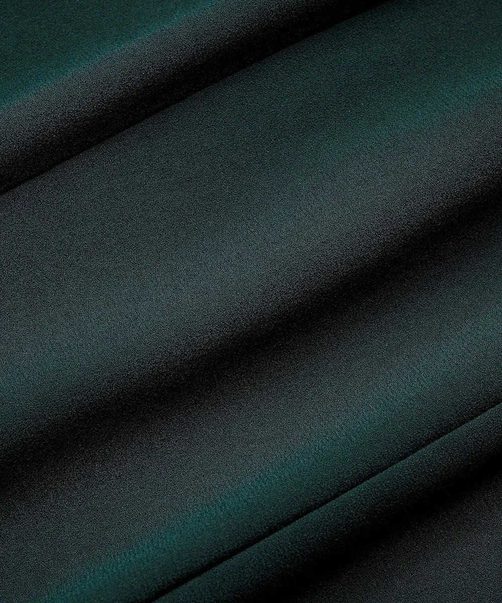 縦ラインを意識した刺繍の配置とウエスト部分が絞られてタックが入っているので自然に立体感が作られ、スタイルアップいたします。