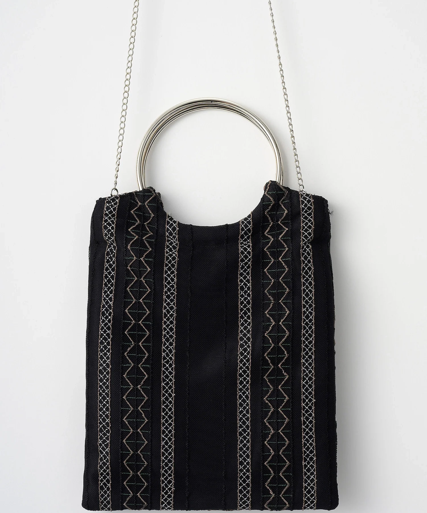 手描きデザインから生まれた総刺繍レースを贅沢に配したクラシックなレースバッグ。チェーンを外せばハンド、付ければショルダーとして使える2wayで、オケージョンから日常まで幅広く活躍します。スマホやミニ財布など必需品が収まる、きちんと感と実用性の両立が魅力です。
