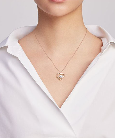 モダンなラインで花の輪郭を描く「chants」から、胸元に可憐さと凛とした表情を添えるペンダント。淡く繊細なSAKURAGOLD™と艶めくあこや真珠のハーモニーが、日常からオケージョンまで上品に引き立てます。