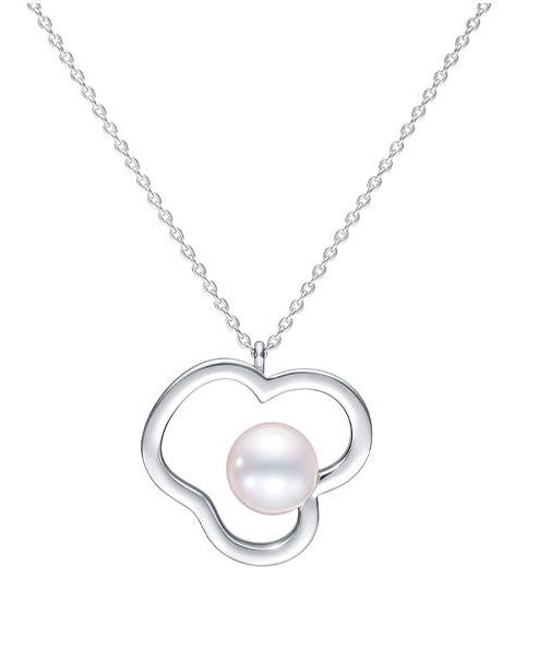 TASAKI「チャンツ」コレクションのペンダント。素材は18Kホワイトゴールドとあこや真珠。トップは花の輪郭を軽やかなラインで表現し、約7.0mmのパールをセット。チェーンは全長約45cm(約5cmのアジャスター含む)、トップは約縦16.5mm×横18.5mmです。可憐さと凛とした印象を両立する、ギフトにも最適な一品。