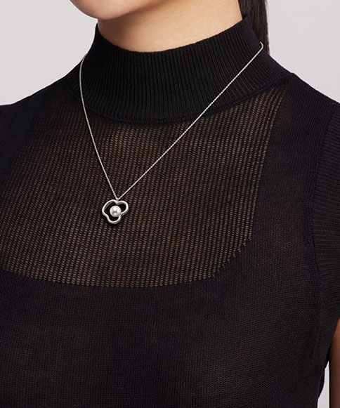 清らかに艶めくあこや真珠を、繊細な曲線で描いたフラワーモチーフが包み込む「chants」ペンダント。クリーンなホワイトゴールドの光が肌にすっと馴染み、日常からセレモニーまで上品に佇みます。胸元の中央に美しく収まる45cmチェーンで、一粒の気品をさりげなく。