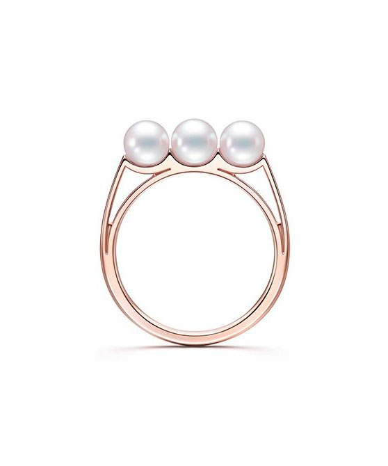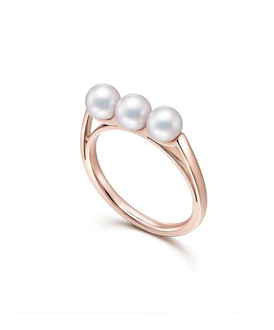 「balance light」リング。SAKURAGOLD™とあこや真珠を用いたミニマルなデザインで、単品でも重ねづけでも美しく映えます。パールは約4.5mm。タイムレスに愛用できる一本です。