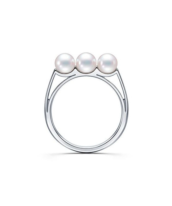 「balance light」リング。プラチナ×あこや真珠の端正なコントラストが魅力。パールは約4.5mmで、ミニマルなサイズ感が手元のコーディネートを選びません。