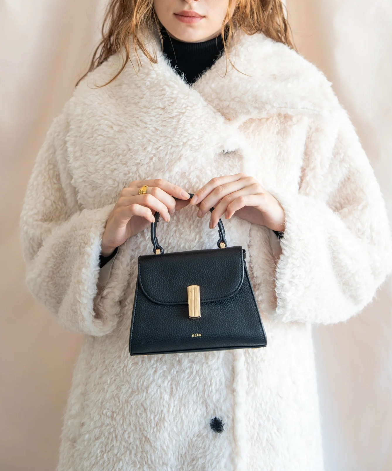 しなやかな質感のフェイクレザーを使った、Ackaらしいミニサイズのクラシックバッグです。程よい艶感のあるボディに、ゴールドの金具がさりげなく光り、ドレススタイルに上品なアクセントをプラスしてくれます。