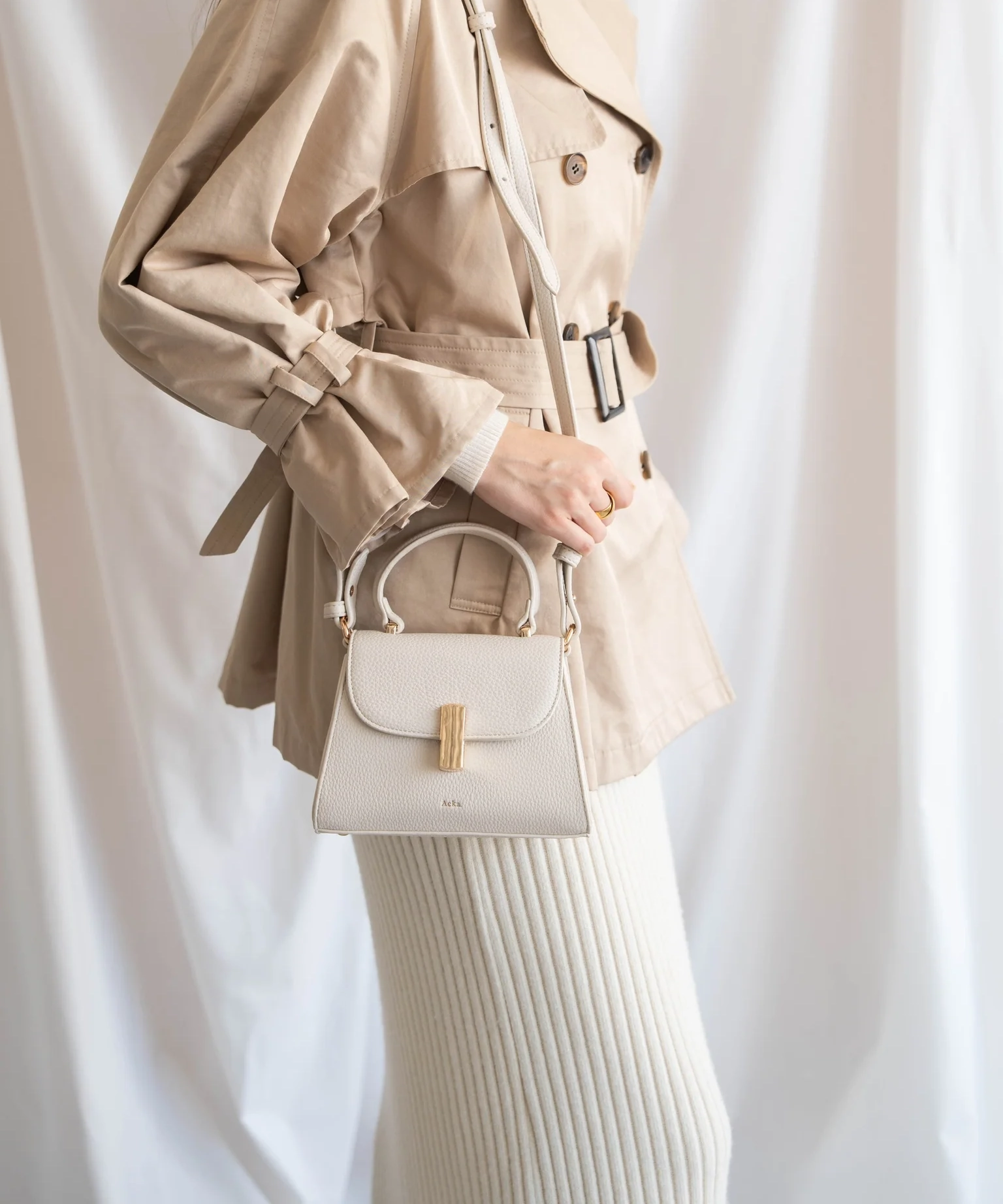 しなやかな質感のフェイクレザーを使った、Ackaらしいミニサイズのクラシックバッグです。程よい艶感のあるボディに、ゴールドの金具がさりげなく光り、ドレススタイルに上品なアクセントをプラスしてくれます。