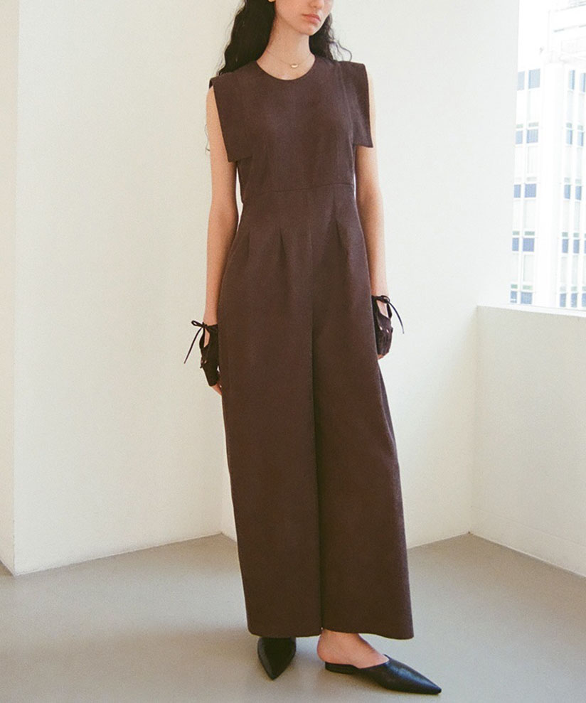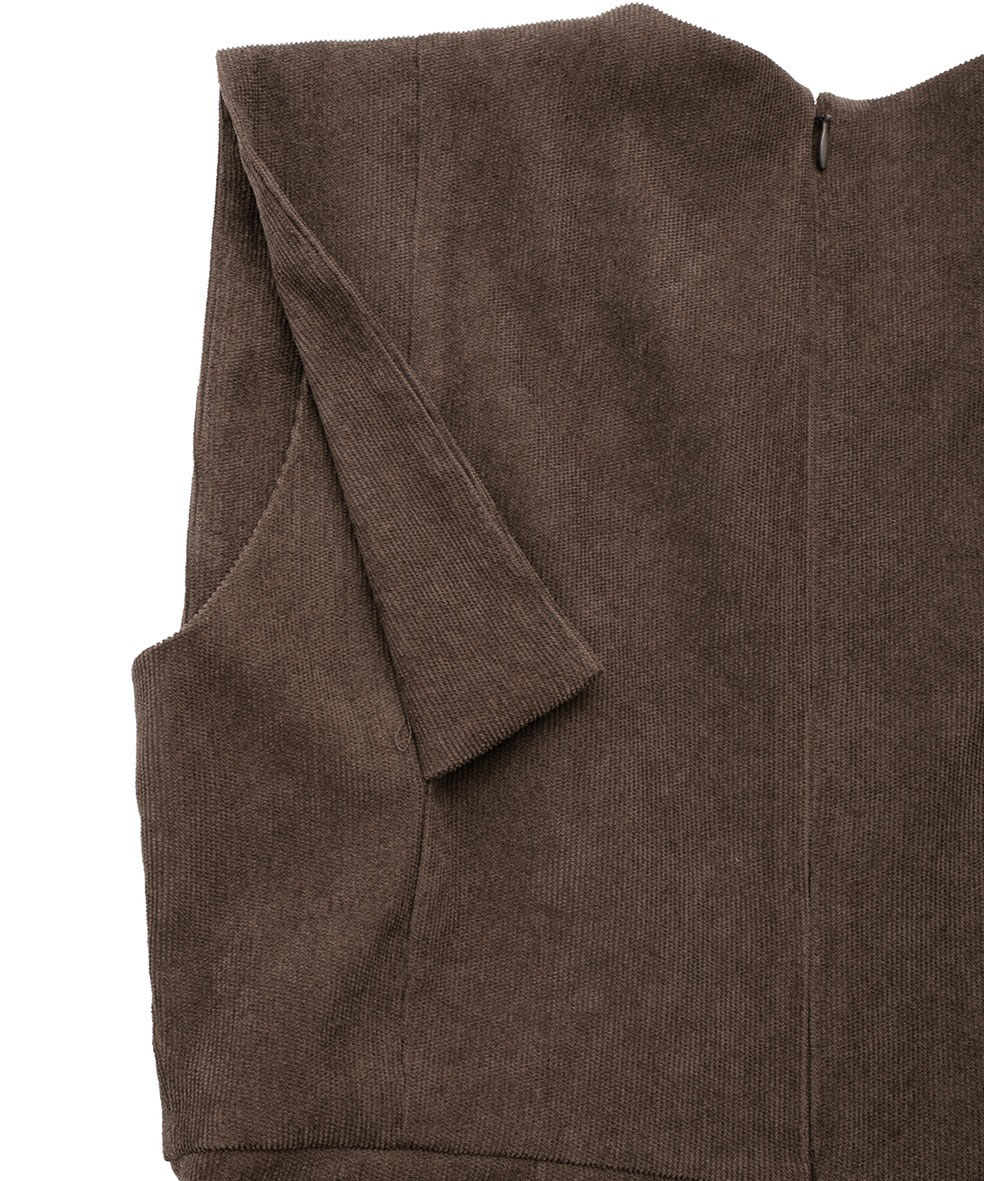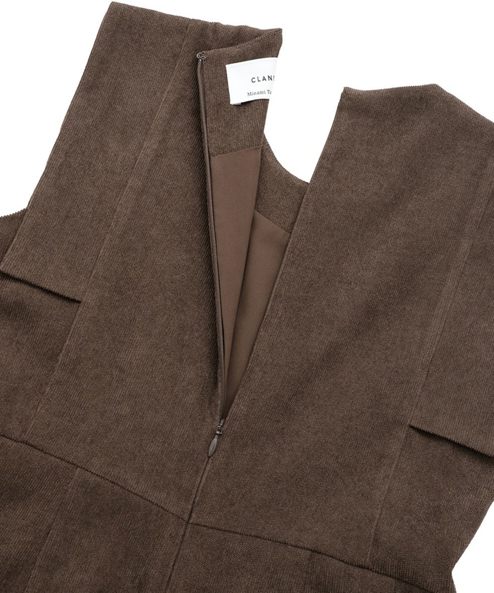 CLANE × Minami Tanaka の人気コラボラインから復刻したスクエアスリーブオールインワン。肩まわりをすっきりと見せるスクエアスリーブデザインが、さりげなく二の腕をカバーしつつモードな印象を演出します。柔らかく細畝のコーデュロイ素材を使用し、大人の抜け感と上品なリラックスムードを実現。程よいゆとりのあるシルエットで、幅広い体型にフィットします