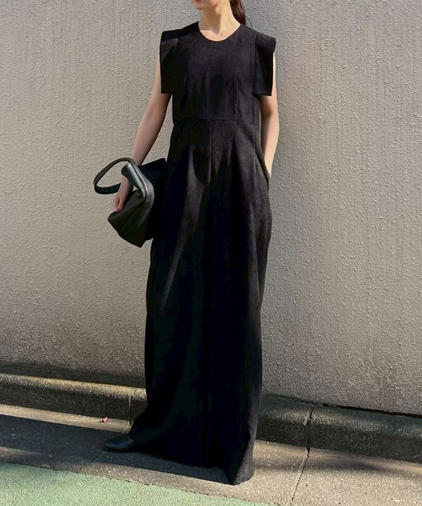 CLANE × Minami Tanaka の人気コラボラインから復刻したスクエアスリーブオールインワン。肩まわりをすっきりと見せるスクエアスリーブデザインが、さりげなく二の腕をカバーしつつモードな印象を演出します。柔らかく細畝のコーデュロイ素材を使用し、大人の抜け感と上品なリラックスムードを実現。程よいゆとりのあるシルエットで、幅広い体型にフィットします