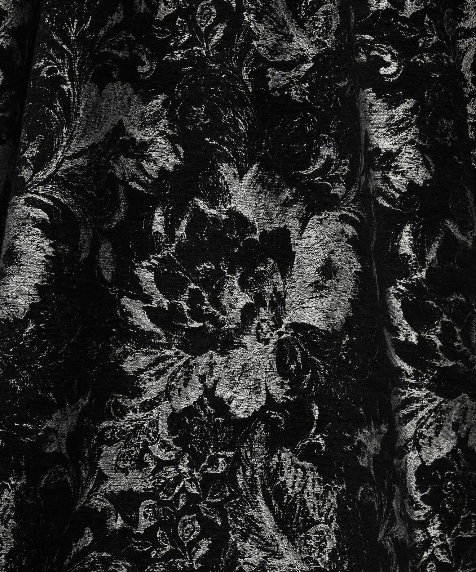 総柄デザインが印象的なクラシックムードのロングドレスです。デコルテを美しく見せるネックラインと、程よくフィットする身頃がバランスよく、ウエスト切替から広がるスカートが自然な立体感を演出します。落ち着いた色合いで1枚でも着用しやすく、きれいめなシーンにも対応できる一着。ポケットはなしです。
