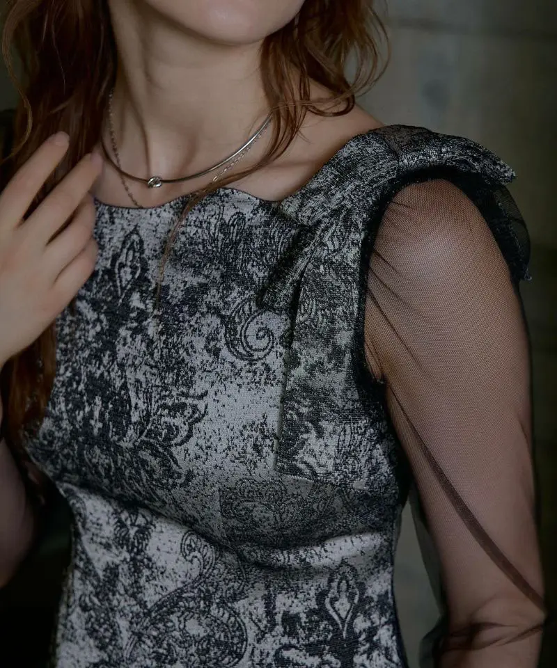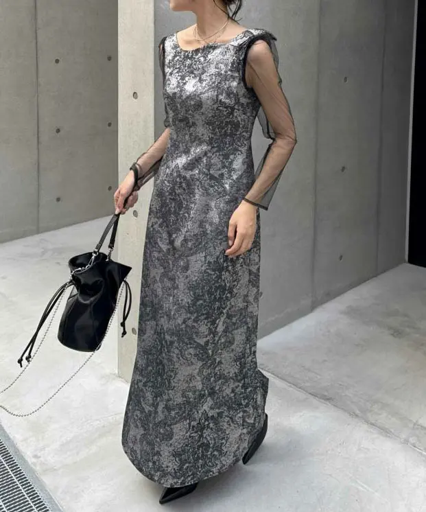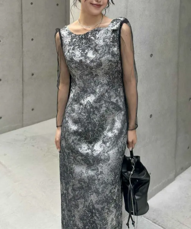 ’25 AWのジャガードドレスを、オールシーズン着られる仕様にアップデートした一着です。上品に仕立てたジャガード生地は、カラーごとに素材映えと華やかさが叶うのがポイント。ショルダー部分の立体リボンでトレンド感を添え、袖には柔らかなチュールを採用して軽やかな抜け感を演出します。バックファスナー仕様で着脱しやすく、バックスリット入りで足さばきも◎。