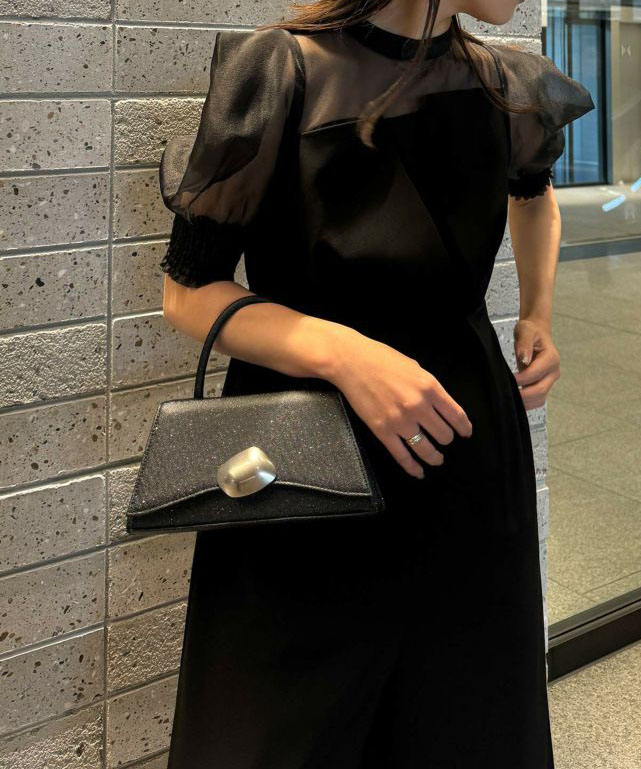 上品な光沢感のトランペジウムフォルムで、持つだけでコーデが引き締まるLE’RUREの定番パーティーバッグです。小ぶりでもマチがあり、必要なアイテムが収まりやすいのが嬉しいポイント。ゴールド(またはシルバー)のストーン風チャームがさりげなく華やかで、結婚式や二次会はもちろん、きれいめカジュアルのアクセントとしても活躍します。チェーンは取り外しできるので、ハンド持ち・ショルダー持ちをシーンに合わせて使い分けできます。