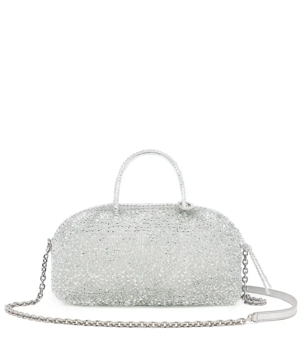 きらきらとジュエリーのように輝くシルバーが、持つだけでコーデを華やかに格上げしてくれるワイヤーバッグです。ころんとしたオーバルシルエットが可愛く、手持ちでも斜めがけでもバランスよく決まるのが魅力。ミディアムサイズは見た目以上に収納力があり、長財布やスマホに加えて、折りたたみ傘やペットボトルなど“必需品+α”まで入るので、普段使いにも頼れます。ファスナー付きで中身が見えにくく、移動が多い日やパーティーシーンでも安心です。