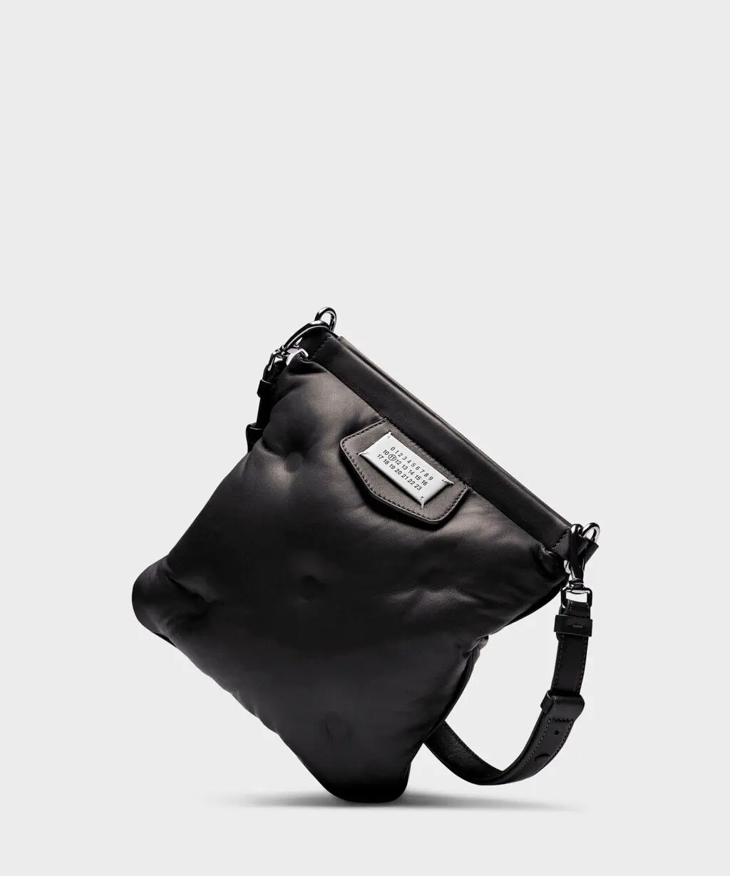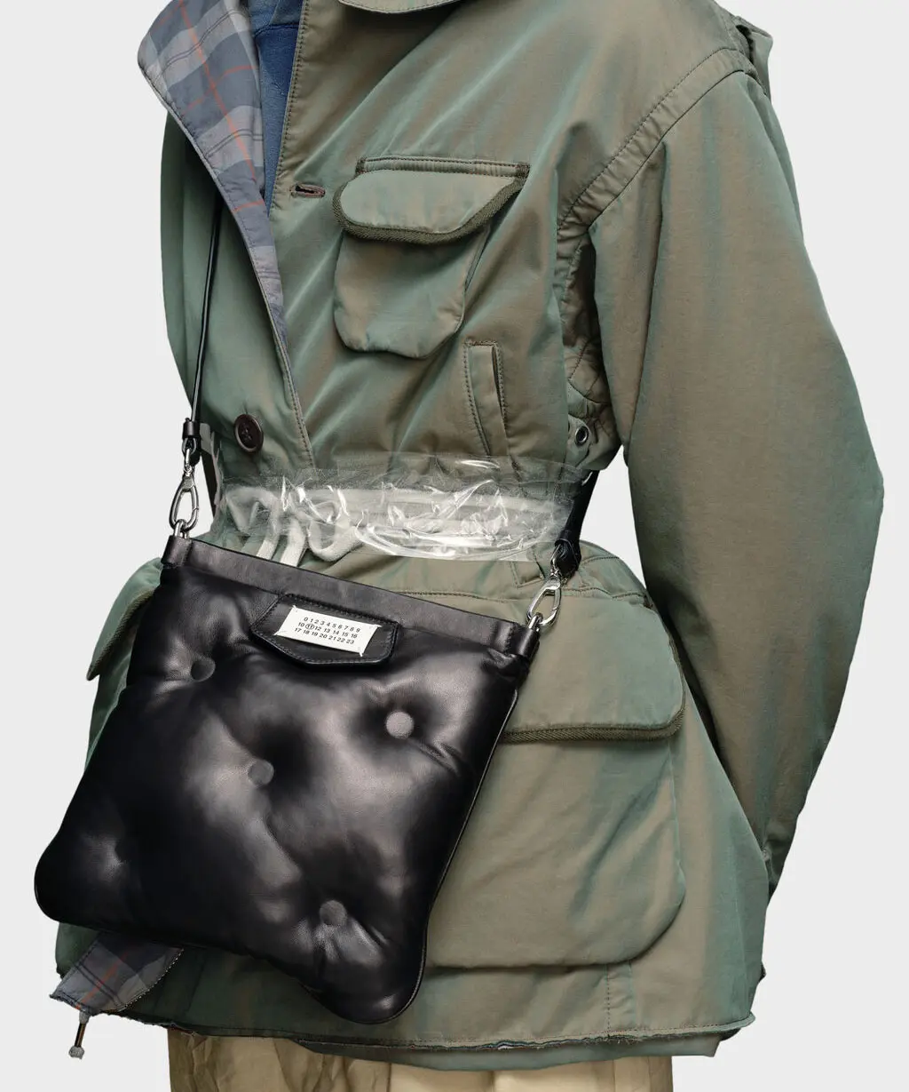 プラッシュ感のあるキルティング(マトラッセを想起させる)をナッパレザーで表現した「Glam Slam」シリーズのフラップポケットバッグです。丸みのあるエッジにマグネットクロージャーを組み合わせ、フロントにはナンバリングロゴラベルを配置。内側にはファスナーポケットがあり、ストラップは取り外し可能・長さ調整ができる仕様です。イタリア製。