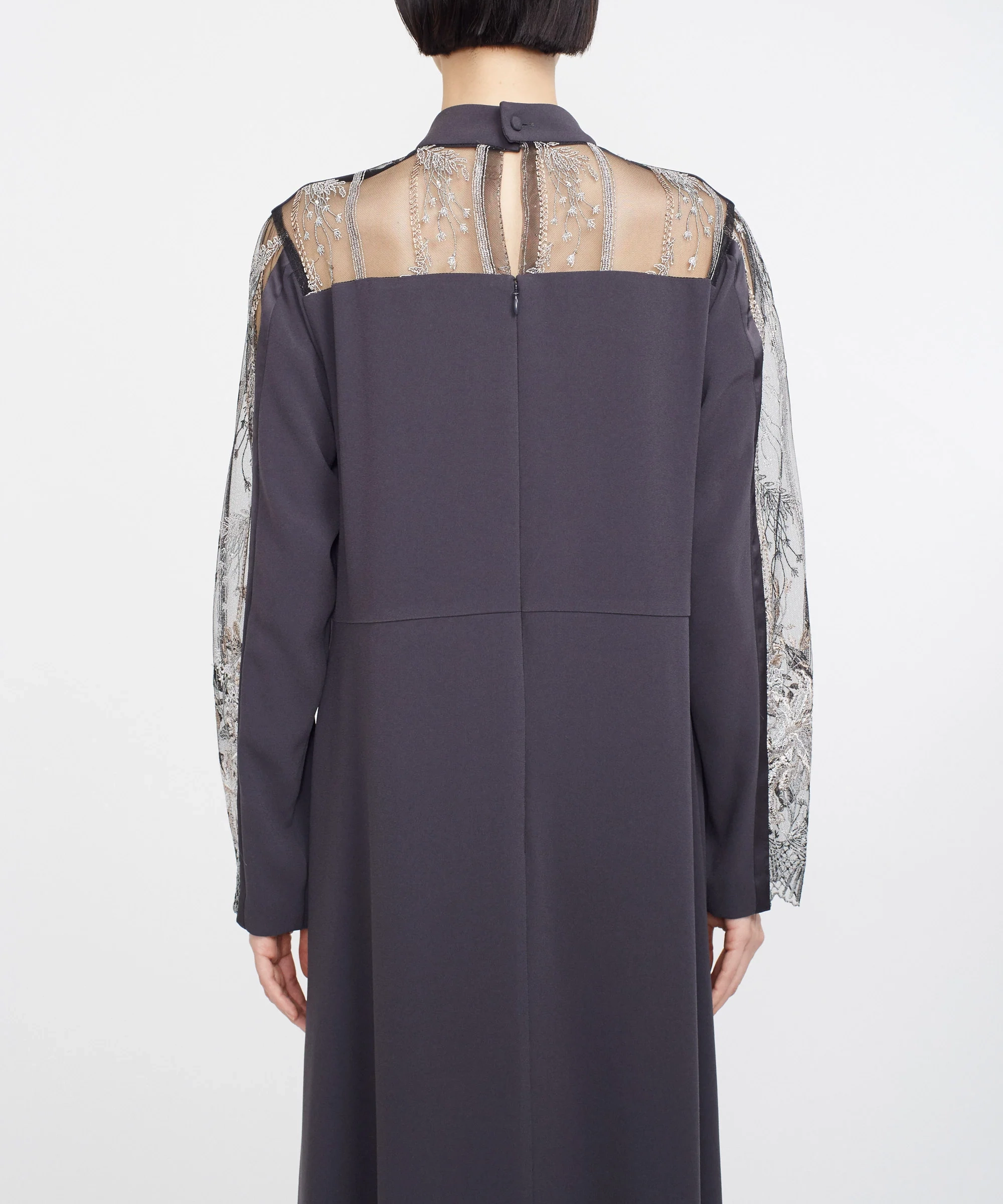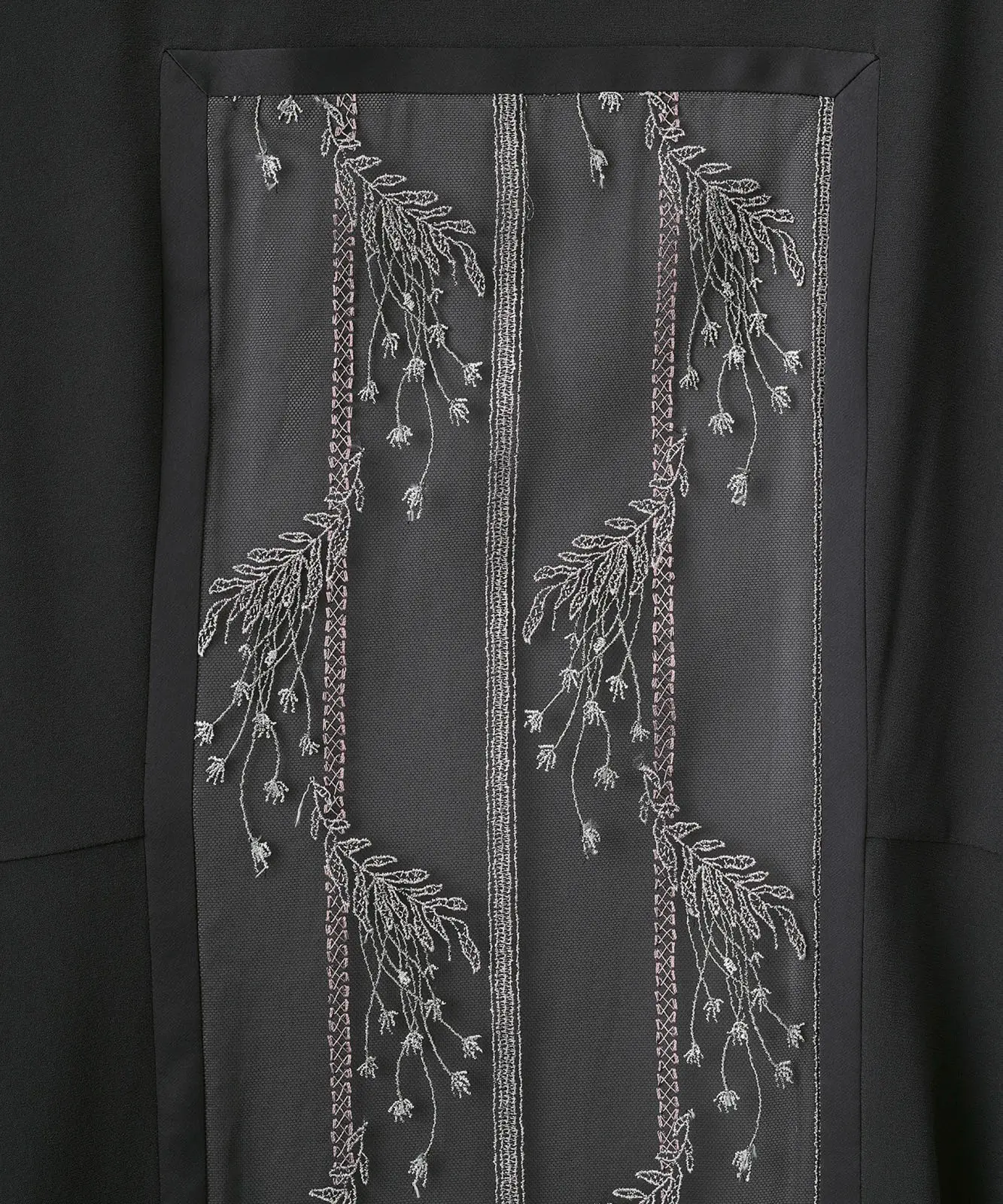 芸術的な刺繍デザインが魅力のMURRALのドレス。繊細なラインで表現されたモチーフが、シンプルなボディに映え、洗練された印象を演出します。