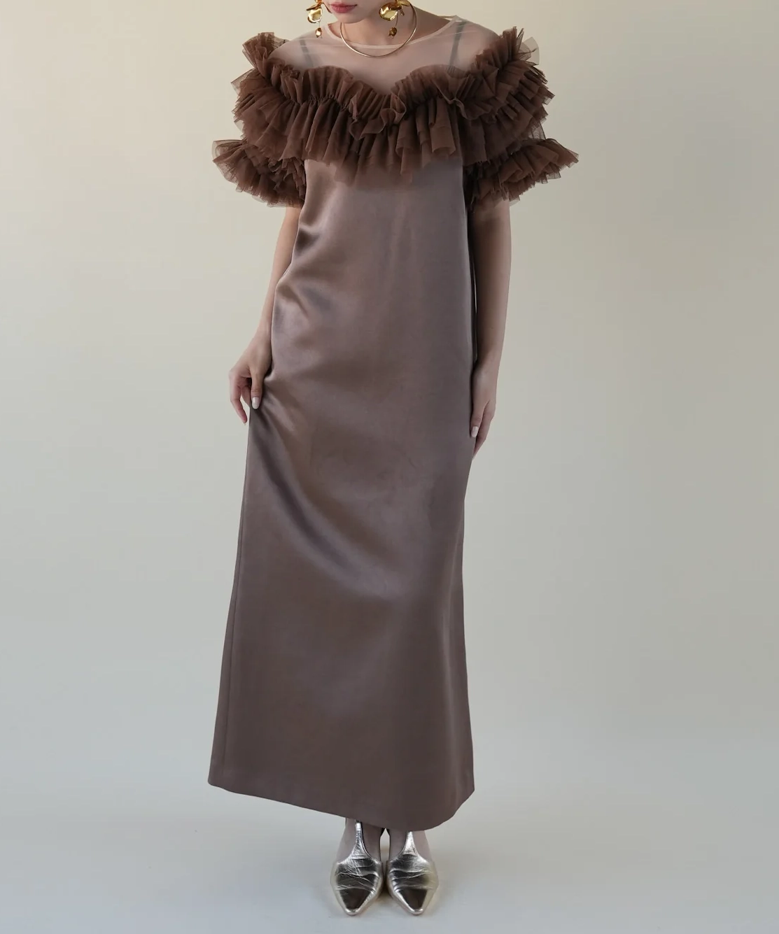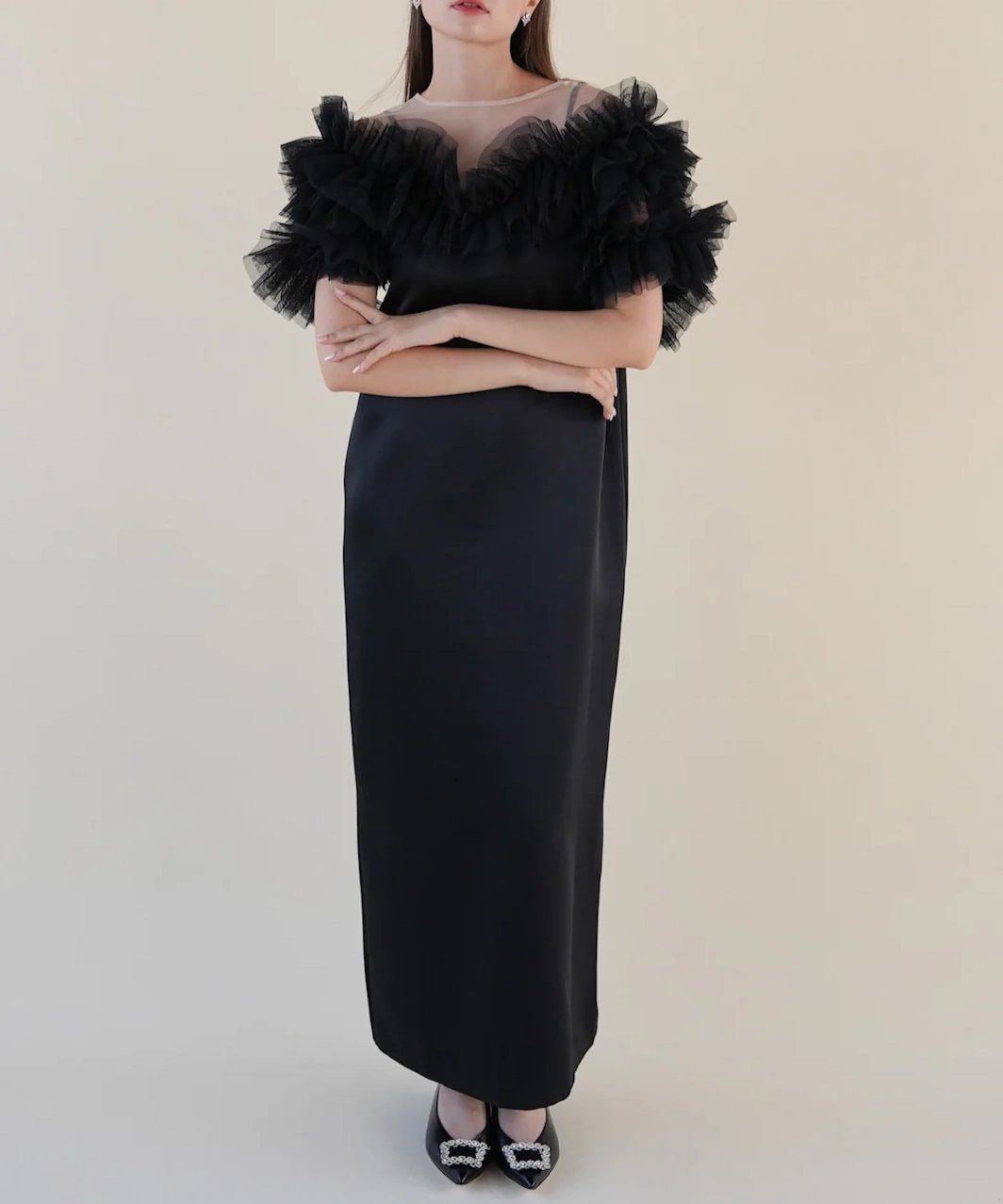 【Mサイズ】CONSTRICTED TOP DOT TULLE SET DRESS