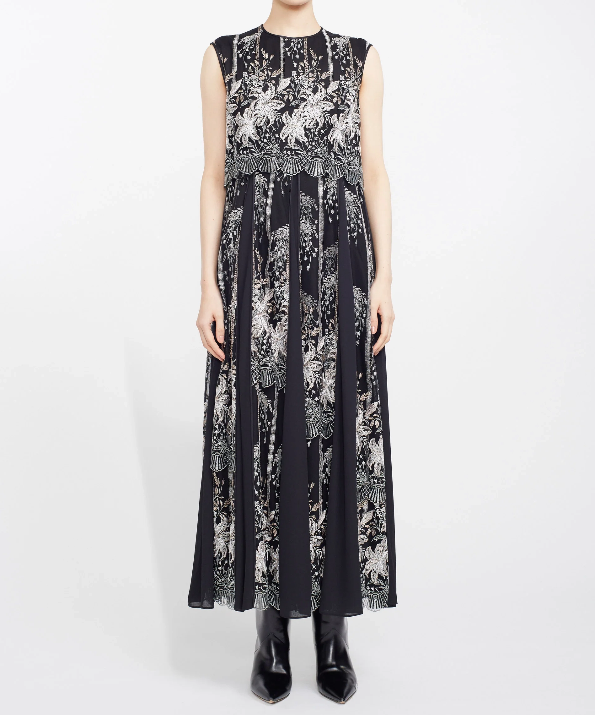 【2サイズ】Triacetate Georgette Embroidery Collar Dress - black